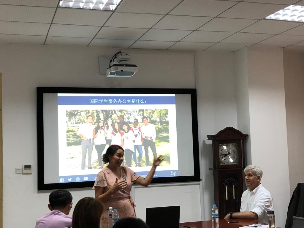 圣达菲相关人员与我校英语教育专业和早期教育专业的学生进行了交流。交流会上气氛热烈,通过同学们的才艺展示,也让前来交流的老师对我们的学生有了更全面的了解,为今后双方的进一步合作打下良好的基础。