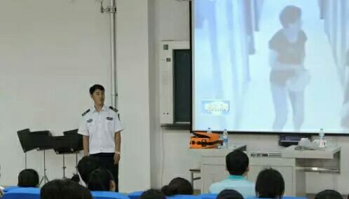 吴警官主要从消防的目的和基本的消防安全制度为大家讲解,并为大家介绍了有关消防的法律法规。吴警官接着为我们展示了关于火灾令人触目惊心的图片和让人深思的视频来借此提高同学们的警觉性,随后吴警官又列出了很多不良的的生活用电习惯,他讲到学生宿舍的用电安全和在家时的用电安全,最后吴警官介绍了常规设施的使用,并现场演示了灭火器和防毒面具的正确使用方法,让大家对消防知识有了更直观的了解。