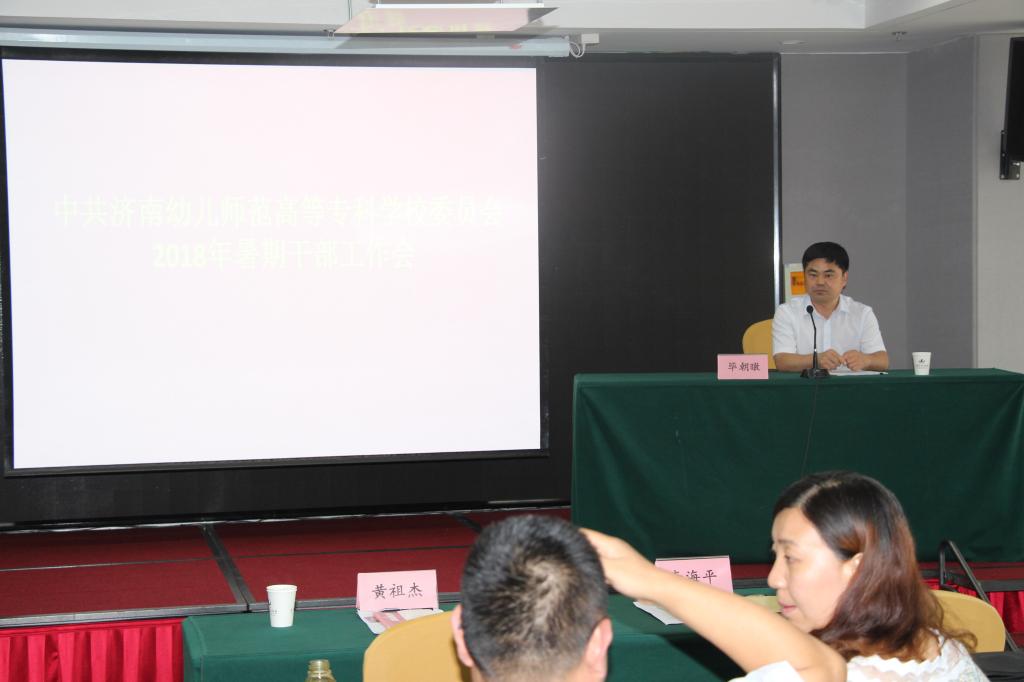 党委书记黄祖杰作了《全面落实主体责任,全面推进创优升本》的主题报告。黄书记指出,暑期干部工作分成两个阶段,先接受革命传统教育,后集中研讨工作,我们坚持做了两年。实践证明,这种方式非常有成效,要成为一种制度安排坚持下去。黄书记指出,上半年学校工作,以习近平新时代中国特色社会主义思想为指引,全校上下深入学习贯彻党的十九大精神,紧扣立德树人根本任务,加快“创优升本”建设步伐。从目前工作进展情况看,学校整体工作稳中求进,实中求新,取得一定的成绩。