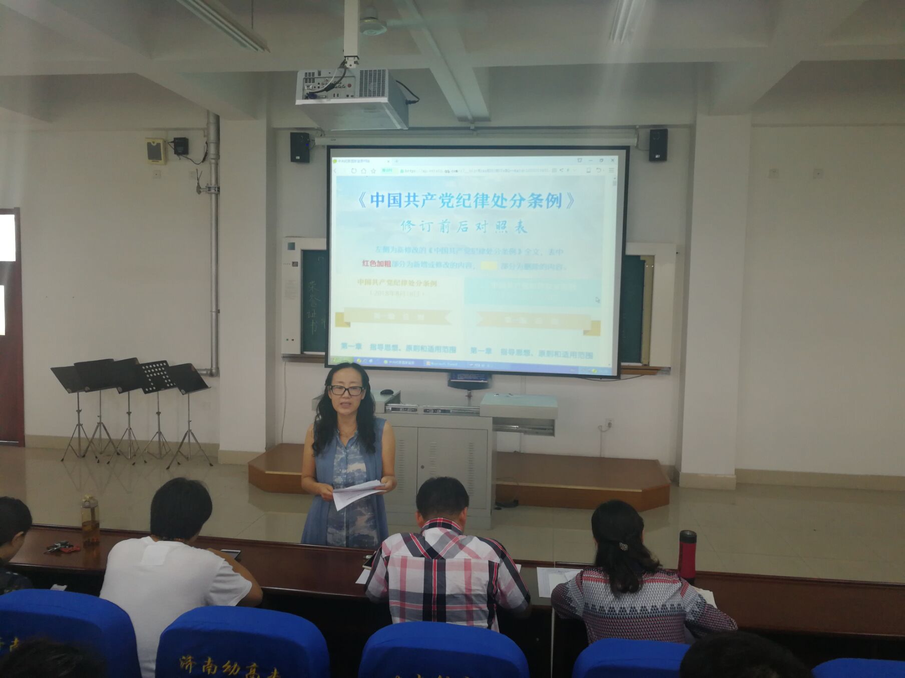 新学期伊始,为加强学院纪律建设,坚定不移推进党风廉政建设,9月2日,艺术教育学院党总支一号教学楼十一阶梯教室开展学习《中国共产党纪律处分条例》会议。学院全体党员参加了此次会议。