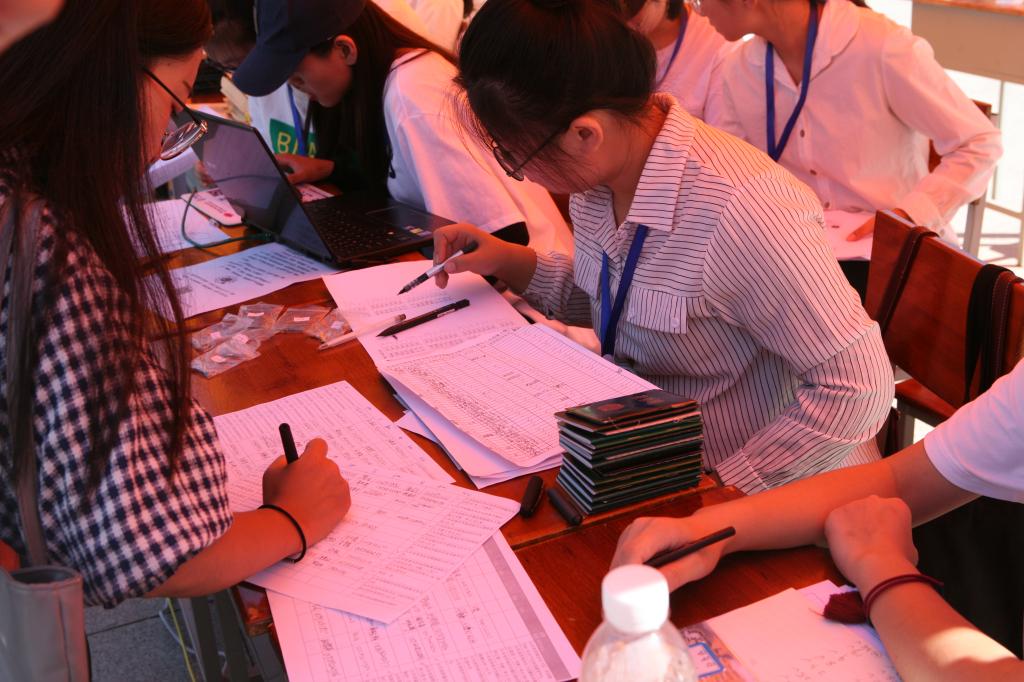 “各位老师、同学,辛苦了。”校长李海平、副校长张传银慰问了各学院负责接待工作的师生,询问了工作的进展情况、存在的问题,并提出建议。随后,李校长和张校长一同到学校门口,了解新生报到车辆出入情况,向合作单位的工作人员表示感谢。