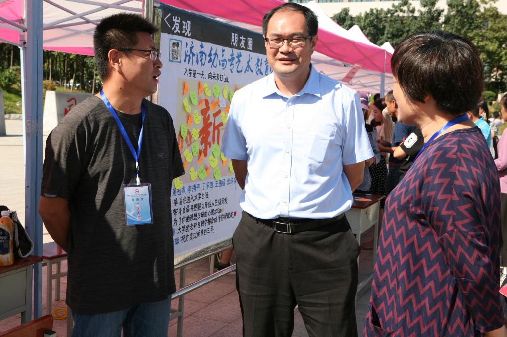为做好迎新工作,学校成立了新生接待和入学领导小组,各部门明确分工,有序合作,确保迎新工作的顺利开展。各学院的新生报到点、新生报到咨询处、家长休息处、绿色通道报到处等布置的井然有序,为方便新生家长能够按时返程,学校专门设立了新生家长返程乘车点,调派车辆定点将新生家长送至返程车站。由于学校周边道路封闭施工,为方便新生准时报到,学校还与创新谷街道办事处、中建八局、济南轻轨等单位合作,安排专门人员在校门口指挥车辆有序行进,避免交通事故发生。