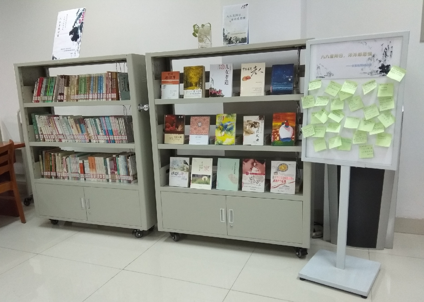 重阳节是弘扬中华民族尊老敬老优良传统的重要节日。为弘扬传统文化,在重阳节到来之际,学校图书馆文学书库开展了“九九重阳日·浓浓感恩情”主题活动。