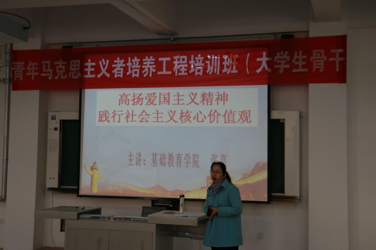 开班仪式结束后,基础教育学院张嘉老师为广大学员带来了一场以“弘扬爱国主义精神、践行社会主义核心价值”的主题报告,拉开了2018年青马工程培训班的序幕。