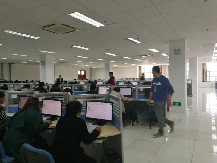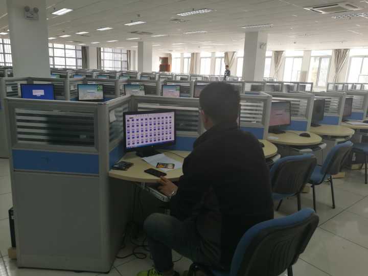 本次考试是第一次采用机考模式,经测试该考试程序与电子阅览室原有的汇文管理系统存在冲突,客户端无法网络安装,图书馆工作人员连夜手动在196台电脑上成功安装了考试程序客户端,并按要求调整考试机顺序。由于本次考试将190名考生安排在一个考场,对网络的稳定提出了极高的要求,图书馆相关工作人员提前对考试过程中可能存在的各种问题进行预判,经过多次尝试,成功解决了在系统冲突的考试环境中重启掉线客户端、考中更换考试机和备用机等问题,并在济南三个考点中率先完成网络封场。