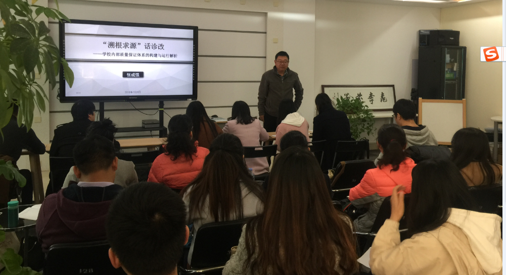 随后进行内部质量保证体系专题培训,由教学诊断与改进工作办公室主任张成强主讲。主讲人结合我校《内部质量保证体系的建设和运行方案》从诊改工作的项目概述、项目溯源、项目构架和项目的实施四个部分,解读诊改工作的紧迫性、必要性和重要性。高屋建瓴,使学习者颇受启发。
