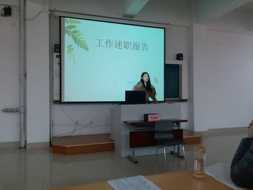 会上,辅导员李梅华、新入职教师赵媛媛、肖文健,就个人思想政治学习情况、工作计划完成情况、创新突破性工作开展情况、服务师生情况、作风转变情况等方面做工作述职。