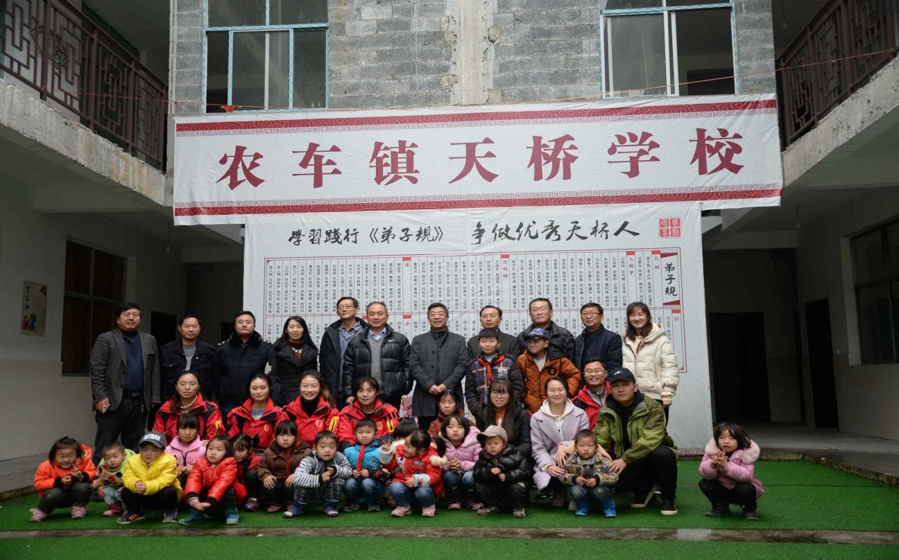 最后,所有领导与支教老师、学生,孩子们一起在天桥学校合影留念。