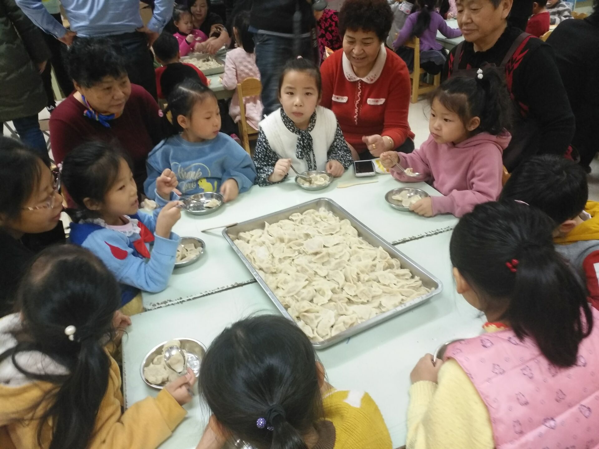 在包饺子活动开始之前,孩子们首先与家长们一起了解了冬至的来历、习俗、古代传说、冬至的传统饮食文化等,然后,老师和孩子们一起认识了包饺子所需要的原材料和用具,孩子们从切馅儿、和面、擀面皮、包饺子,始终参与其中。不一会儿,一个个造型各异的饺子在孩子们可爱、稚嫩、笨拙的小手捏制下“诞生了”。当一盘盘热腾腾的饺子端上来时,大家围坐在一起,吃着自己亲手包的饺子、心情无比兴奋、气氛其乐融融,像过年一样。