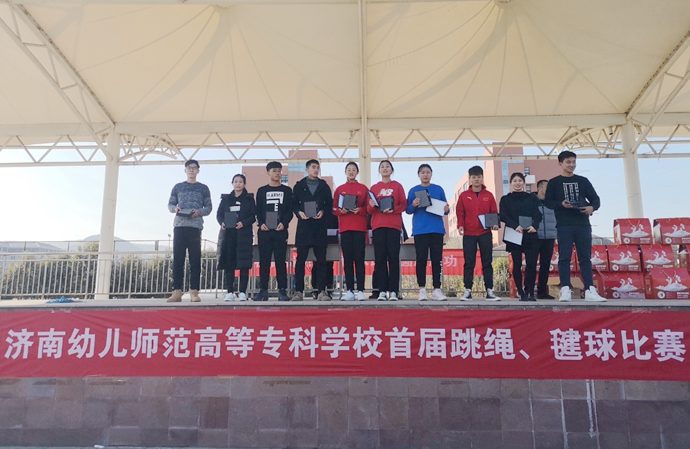 在经历了首轮预赛后,全校232名成功晋级的学生齐聚学校田径场,进行最后的角逐。基础教育学院院长马洪秀、副院长邓东威来到比赛现场,为同学们加油助威。赛场上,传令员、裁判员不畏寒冬、恪尽职守,保证了比赛的顺利进行;参赛员从容不迫,发挥出自己的最佳水平。经过激烈的比拼,跳绳、毽球单项比赛和双人比赛分别决出前三名,并予以奖励,艺术教育学院、基础教育学院、初等教育学院分别荣获团体跳绳前三名。