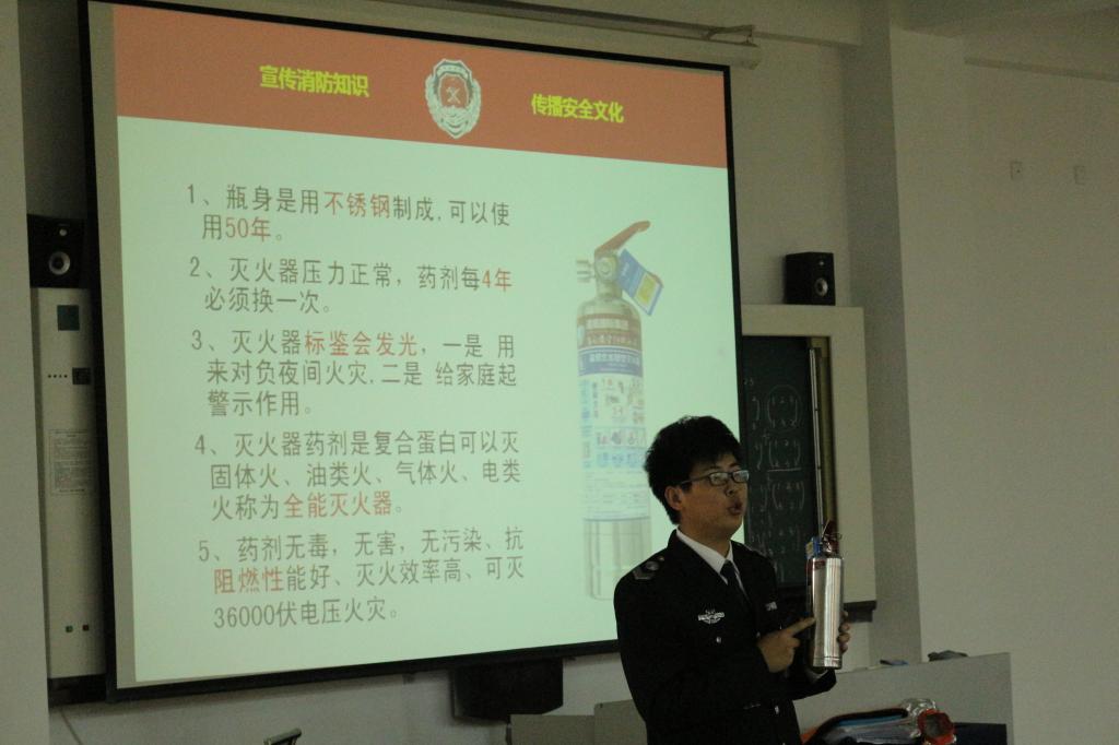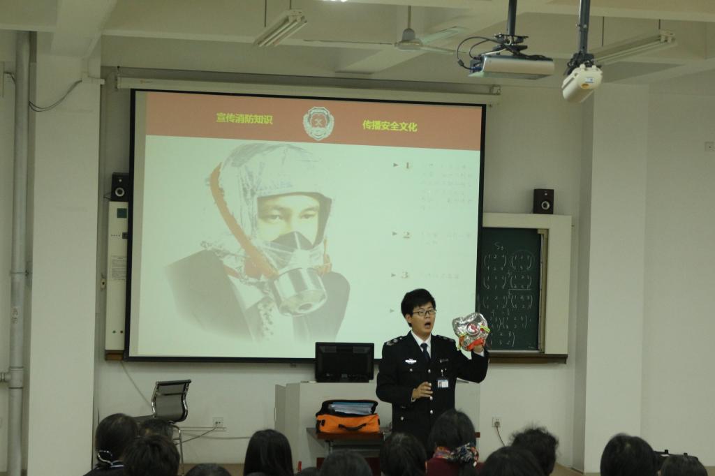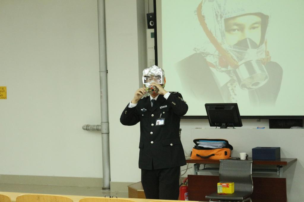讲座中,于教官结合近年来发生的典型火灾事故,运用视频案例以案说法,深入浅出地讲解了消防安全工作的重要性、纠正了大家一些错误的消防安全常识。全面介绍了日常生活中应注意的消防安全细节以及如何扑救初期火灾,火灾中如何自救、逃生等知识。同时现场演示了防毒面具和灭火器的使用方法,让大家受益匪浅。