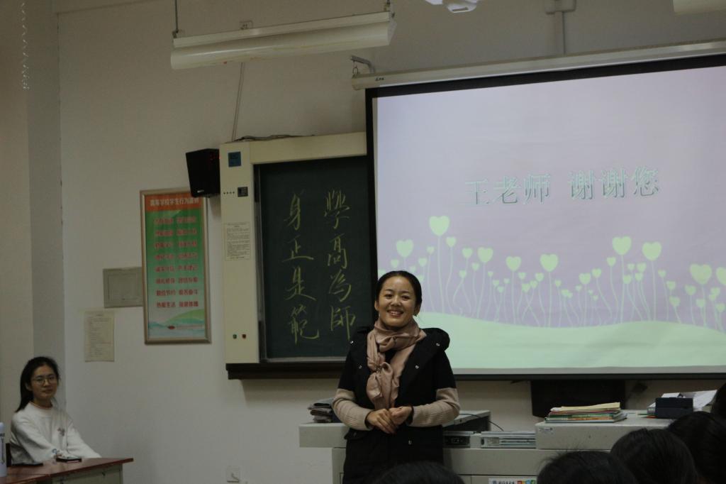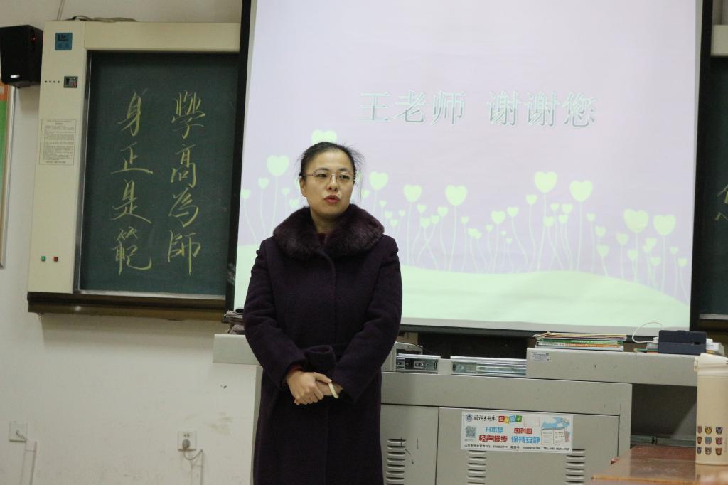 课上,学院副院长范立栎简要介绍了王老师参加工作以来的相关情况,教师代表吕红群、任超、李奎艳、张玲(教育)、吴敏又各自从不同的侧面生动地向同学们讲述了她们心目中独特的王老师。老师们的发言让同学们对王妍老师有了更深刻的了解:她积极乐观、热爱生活,是一位知性优雅的“知心姐姐”;她精益求精、不断学习,是一位专业素质过硬的好老师;她心怀大爱、乐于助人,是一位无私奉献的好员工。说到动情处,老师们流下了激动的泪水,话语中满是不舍的深情。