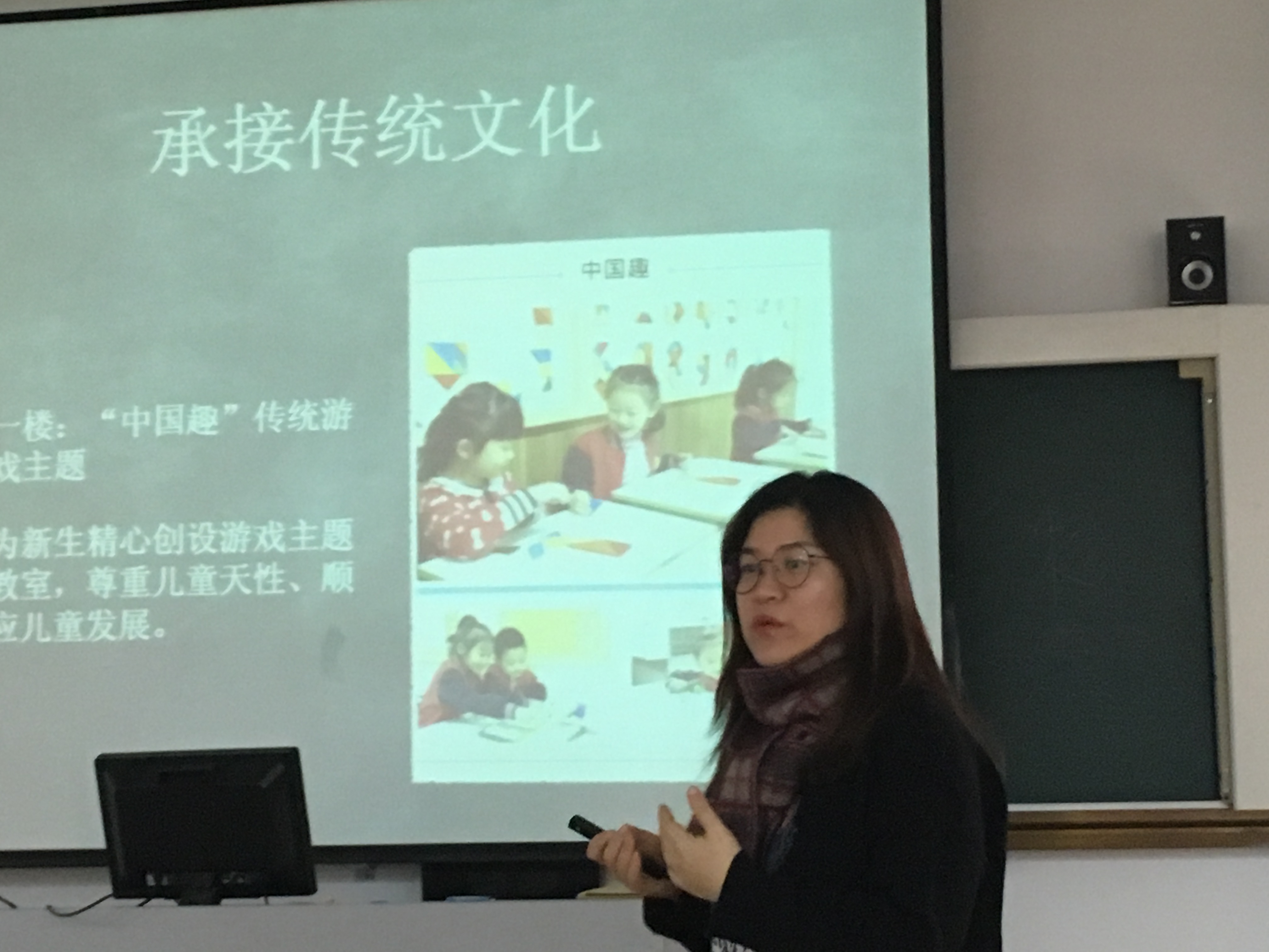 刚从湘西电大支教归来的李梅华老师也分享了她在湘西一个多月以来的工作及生活。在湘西电大,李梅华老师被亲切的称为“来自济南的天使”。一个多月的支教期间,李梅华老师克服种种困难,为学校录制了12节古筝基础课和8学时的音乐鉴赏课并为当地老年大学举办了一系列的讲座,虽然很辛苦,但是感觉收获很大。