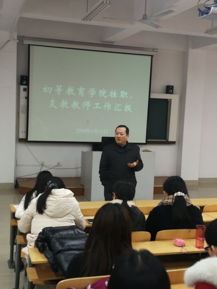 1月15日下午,初等教育学院挂职、支教教师工作交流会在教学楼第五阶梯教室举行,会议由学院院长袁道颐主持。