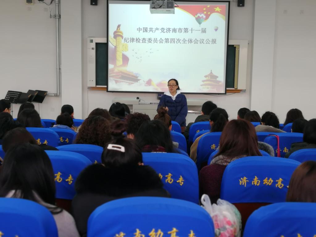 新学期,新启航。开学伊始,为加强党风纪律建设,筑牢反腐倡廉防线。我校艺术教育学院于2月24日在阶梯十一教室召开会议,全院教职工共同学习《中国共产党济南市第十一届纪律检查委员会第四次全体会议公报》。