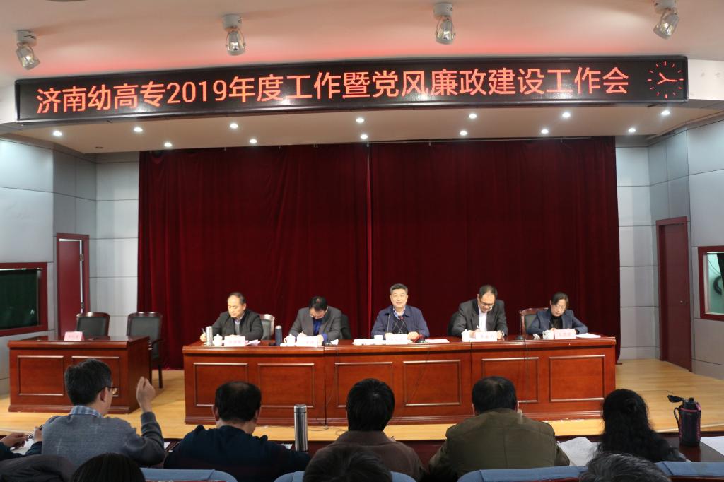 3月2日,我校在明湖校区报告厅召开2019年度工作暨党风廉政建设工作会。党委书记黄祖杰、校长李海平、纪委书记王恩丽、副校长丁家德、张传银及全体党员、助理以上干部、教研室主任、名师工作室主持人、民主党派负责人、一号工程人选参加了会议。副校长丁家德主持会议。