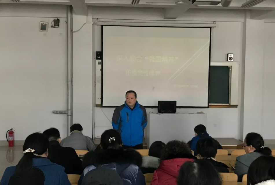 开学初,初等教育学院党总支书记袁道颐在初等教学楼第五阶梯教室,为全体教师党员上了一堂题为“深入领会强国精神,加强党性修养”的专题党课。