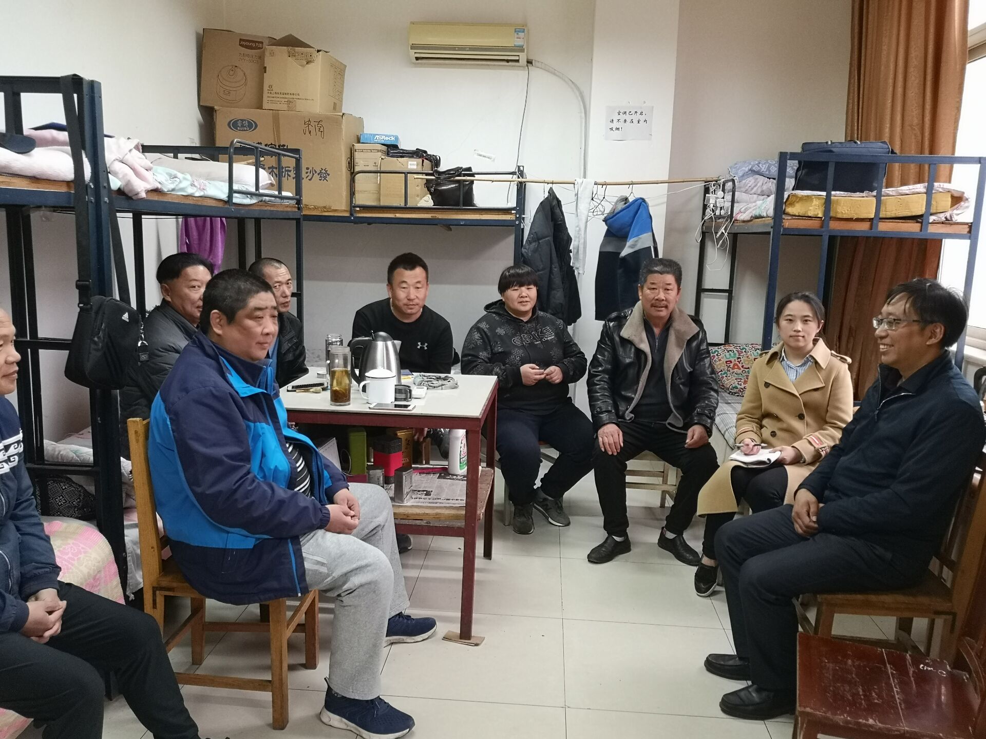随后检查组又检查了班车驾驶员值班室,召开了驾驶员座谈会,开展了驾驶员安全教育。王新程指出:全体班车司机要牢固树立“安全第一”的理念,确保行车安全,文明行车,要以“一家人”的心态,切实为教职工提供卫生、及时、安全、和谐的高质量服务,鼓励大家利用在校时间多读书学习。舜发公司张经理代表全体班车司机进行表态,一定针对本次检查中发现的安全隐患及时整改,为学校广大教职工提供更安全、周到、优质的服务。
