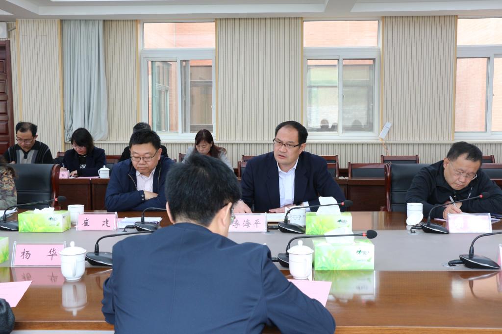 4月26日,我校校长李海平及相关部门负责人在办公楼三楼会议室与吉首大学师范学院党委书记刘保国、党委委员、副院长杨华、党委委员、工会主席张苏东等人员进行了交流座谈。