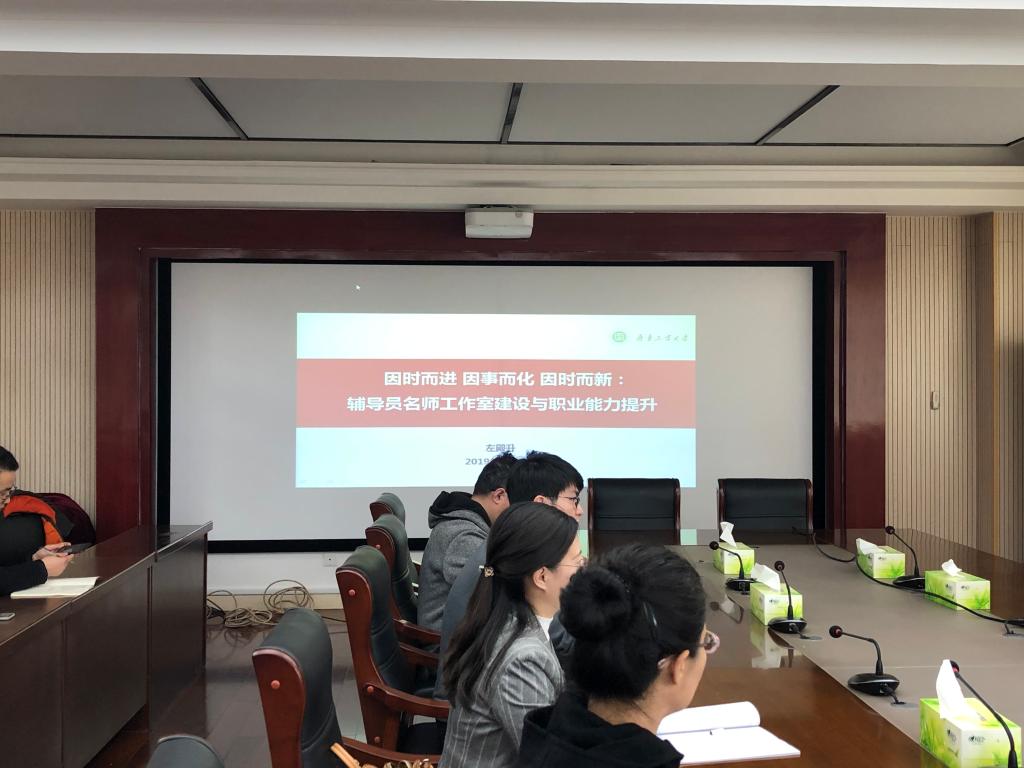 4月25日上午,我校邀请齐鲁工业大学左殿升教授做了题为“因时而进、因事而化、因势而新:辅导员名师工作室建设与职业能力提升”的专题报告。讲座前,学校党委书记黄祖杰、纪委书记王恩丽与左教授作了详细交流,介绍了学校的发展与辅导员队伍建设情况。讲座由学生工作处处长张敬霞主持,各学院分管学生工作副书记、学工办主任、辅导员参加。