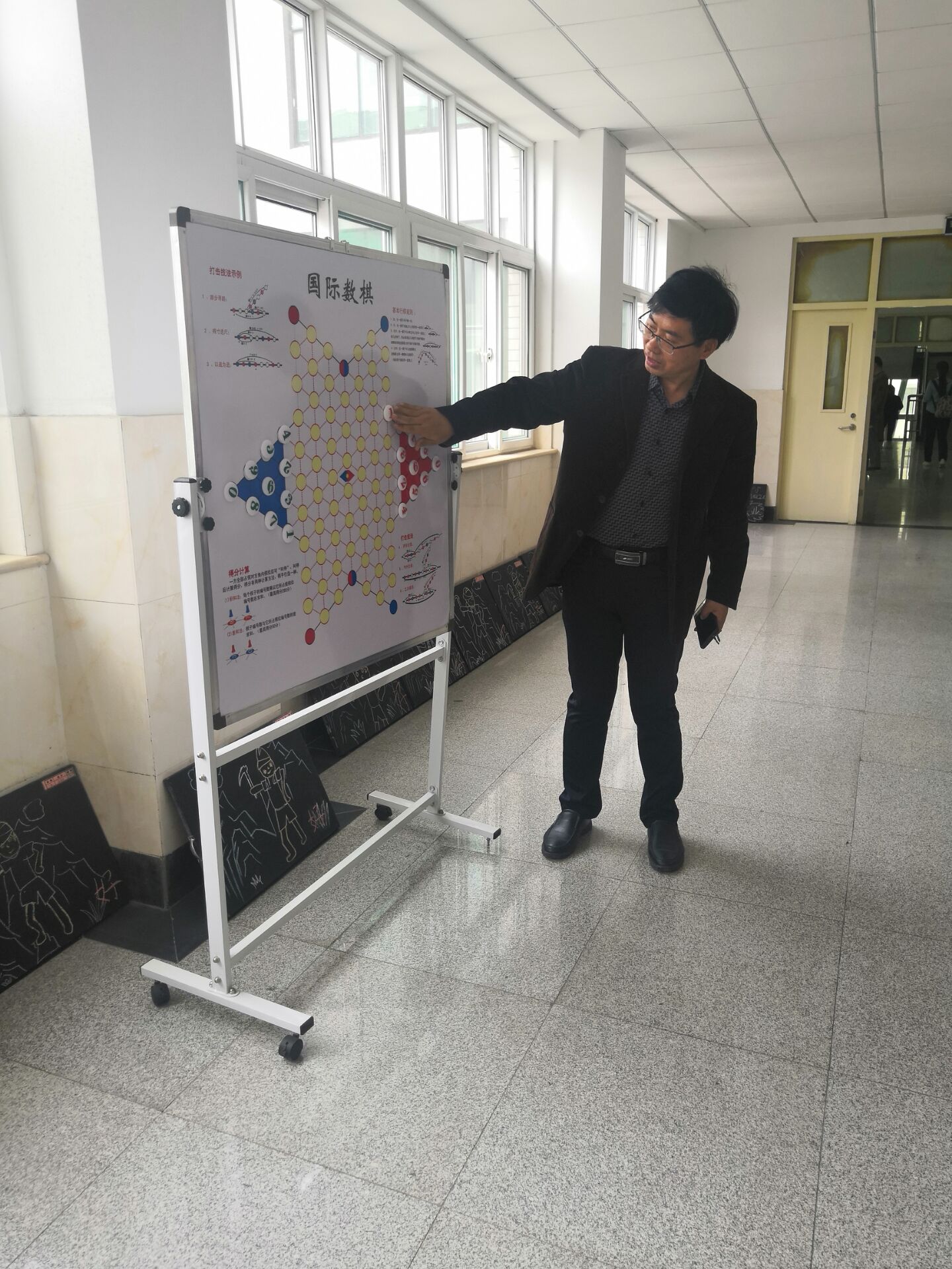 5月8日中午,初等教育学院于1号教学楼3楼中厅举行数棋展示。本次活动由史忠平老师和于文艳老师指导,弈林棋社学生参与,袁道颐院长、孔建副书记、范立栎副院长全程观摩指导。