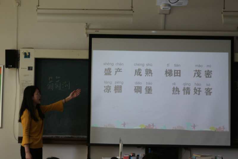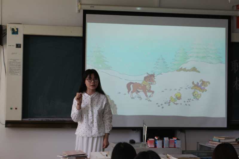 此次大赛分为展示和点评两个环节。展示环节,9位同学带来了各具特色的模拟授课,有的同学讲得活泼生动,把低年级课堂的活跃很好的演绎出来,像《雪地里的小画家》《大象的耳朵》《葡萄沟》《比尾巴》《小柳树和小枣树》;有的同学偏爱高年级的沉稳含蓄,把课堂上饱满的情感挥发的淋漓尽致,像《富饶的西沙群岛》《为中华之崛起而读书》;还有的同学展示了生字课《对韵歌》,丰富了大家对识字方法的认识,拓宽了讲解生字的视野;也有同学选择了像《飞船上的特殊乘客》这种激发学生探索兴趣的说明文,丰富的图片展示一改说明文的枯燥乏味。此次活动,让学生在相互学习的同时,也更好地了解高低年级课堂的差异,以后有针对性的进行教学。虽然每个同学只有十分钟的展示时间,但是整个活动精彩纷呈,充满温情与感动,观看过程中时时冒出思想的小火花,对今后的教学实践很有启发。