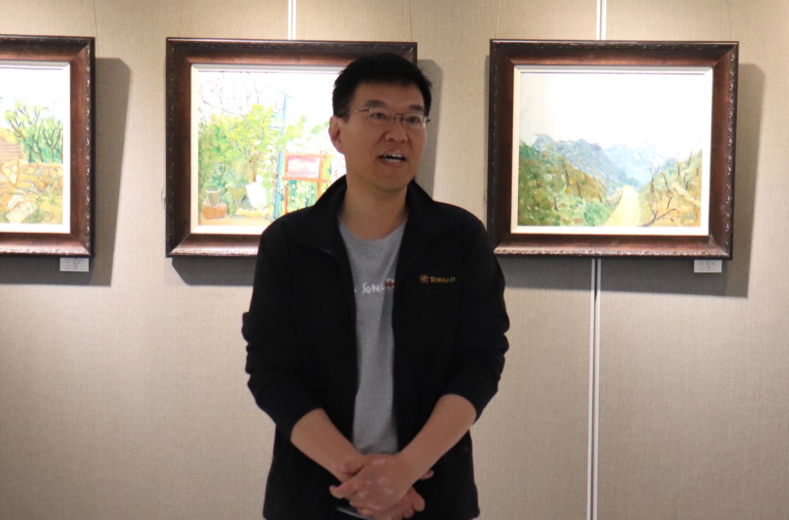开幕式由徐磊老师主持。尹建文院长首先发表讲话,她祝贺17级首次写生成果展顺利举办。她表示17级同学们用自己的画笔将沂蒙山美丽的风景描绘的淋漓尽致,让大家仿佛置身其中,希望同学们刻苦训练,将自己的本领学扎实,并在几位老师的指导帮助下,能画出更多更好的作品。接着,田申老师带大家回忆了在沂蒙山区的点点滴滴,这次写生中,大家都各有新面貌,在绘画中展示出了不一样的自我。最后,王寿山老师也对17级美术教育班同学们的表现给予了肯定,希望广大同学能够继续努力,创作更多优秀画作。