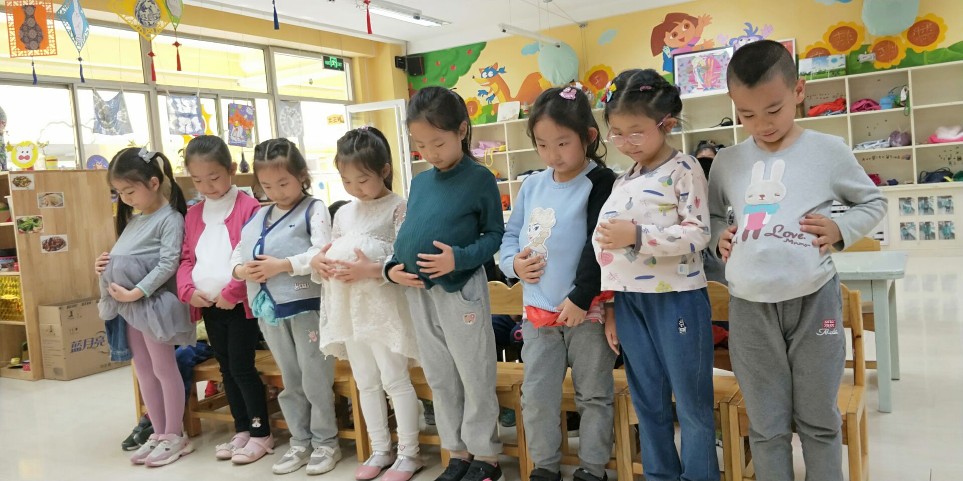 十月怀胎、一朝分娩,作为母亲孕育一个生命的过程,说长不长,说短不短,但其中的艰辛只有母亲才深有感触。为了让孩子们能感受到“准妈妈”及妈妈的辛苦,幼儿园开展了“护蛋”及“准妈妈”体验活动。在护蛋活动中,幼儿每人一个生鸡蛋,从早上入园直至下午离园,让幼儿将蛋放在自己贴身的小包里,随时随地都要带在身上,随时观察、小心呵护,用一天的时间来体验照顾宝宝的辛苦。在“准妈妈”体验活动中,幼儿将一个玩偶塞在自己的小腹前,使自己的肚子高高的隆起来模仿“准妈妈”,让幼儿在一天的日常活动中,体验宝宝在肚子里的感受。在体验的过程中,经常会听到孩子说:“真麻烦”、“真累呀”、“太不方便了”等等。一天的体验活动终于结束了,孩子们通过自身的累、麻烦、不方便等等感受深深体会到了为人母的不容易,感恩之心溢于言表。