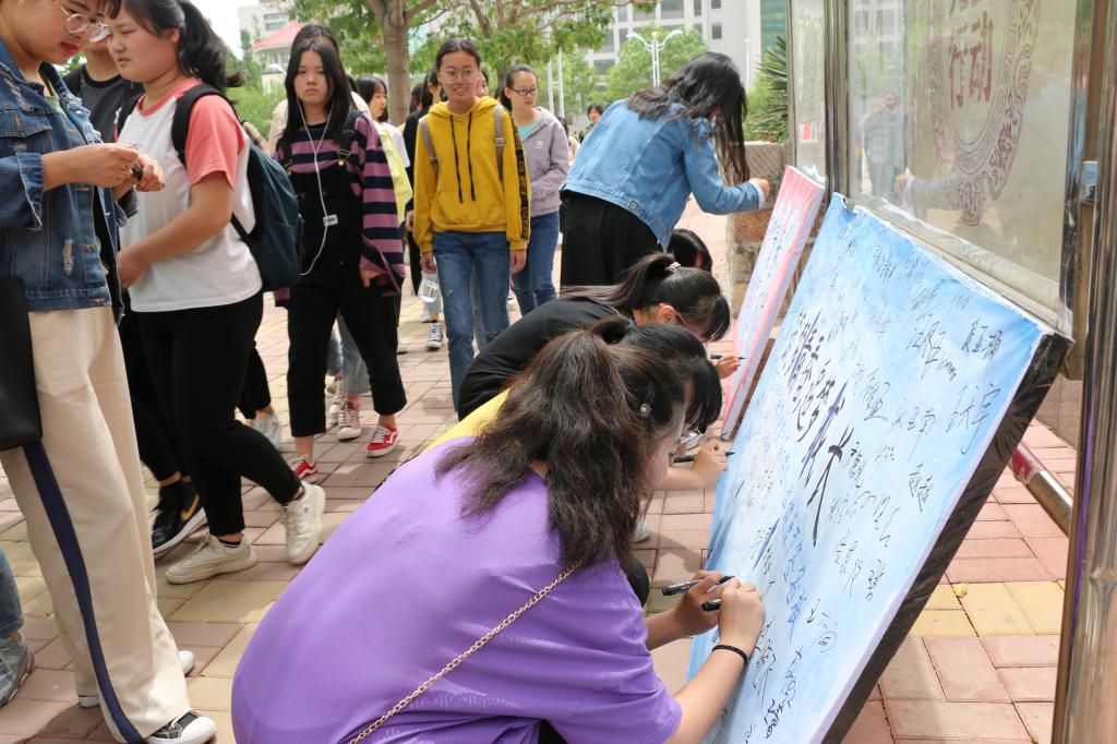 5月13日中午,我校心理健康教育中心在学校餐厅门口举行了以“筑梦青春,追梦成长”为主题的宣传签名活动,此次活动得到了全校广大同学和老师的支持,过往的师生都认真地在签名板上签上自己的名字,表达我校师生对心理健康的重视和关注。这次活动的成功举行标志着我校第六届大学生心理健康节成功开幕。