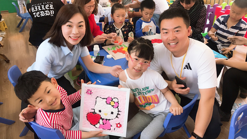 集体教学环节,各班教师们根据小中大班幼儿的年龄特点和发展需要,精心设计了小班自画像,中班创意画,大班纸浆画不同形式的亲子手工制作活动。孩子和家长们在活动中积极探索、合作、思考、学习、倾听。随后老师组织家长和孩子们来到户外开展亲子游戏活动,有趣的亲子游戏不仅给家长和孩子们带来了无尽的欢乐,也更折射出在孩子们的生活中,父母的陪伴才是孩子们快乐的源泉。最后,老师们组织家长进行了家长会活动。各班老师与家长们认真细致的交流了孩子们在幼儿园的日常生活与学习。
