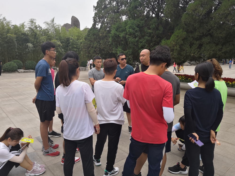 陈涛、张春波两位老师周六一早提前来到场地,进行了场地布点和安排。全体队员早上6:30从长清校区出发,通过公共交工具辗转来到位于市中心的泉城公园,稍作休息就在教练的带领下直接投入紧张的备赛训练。