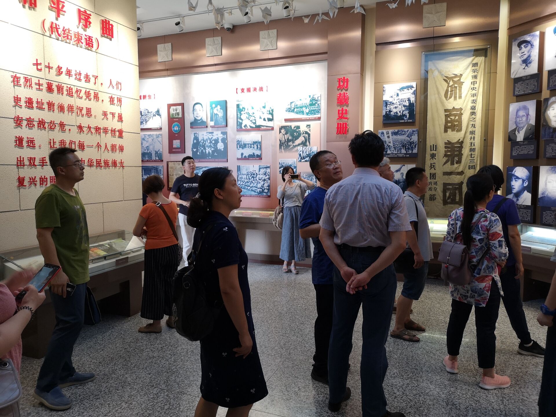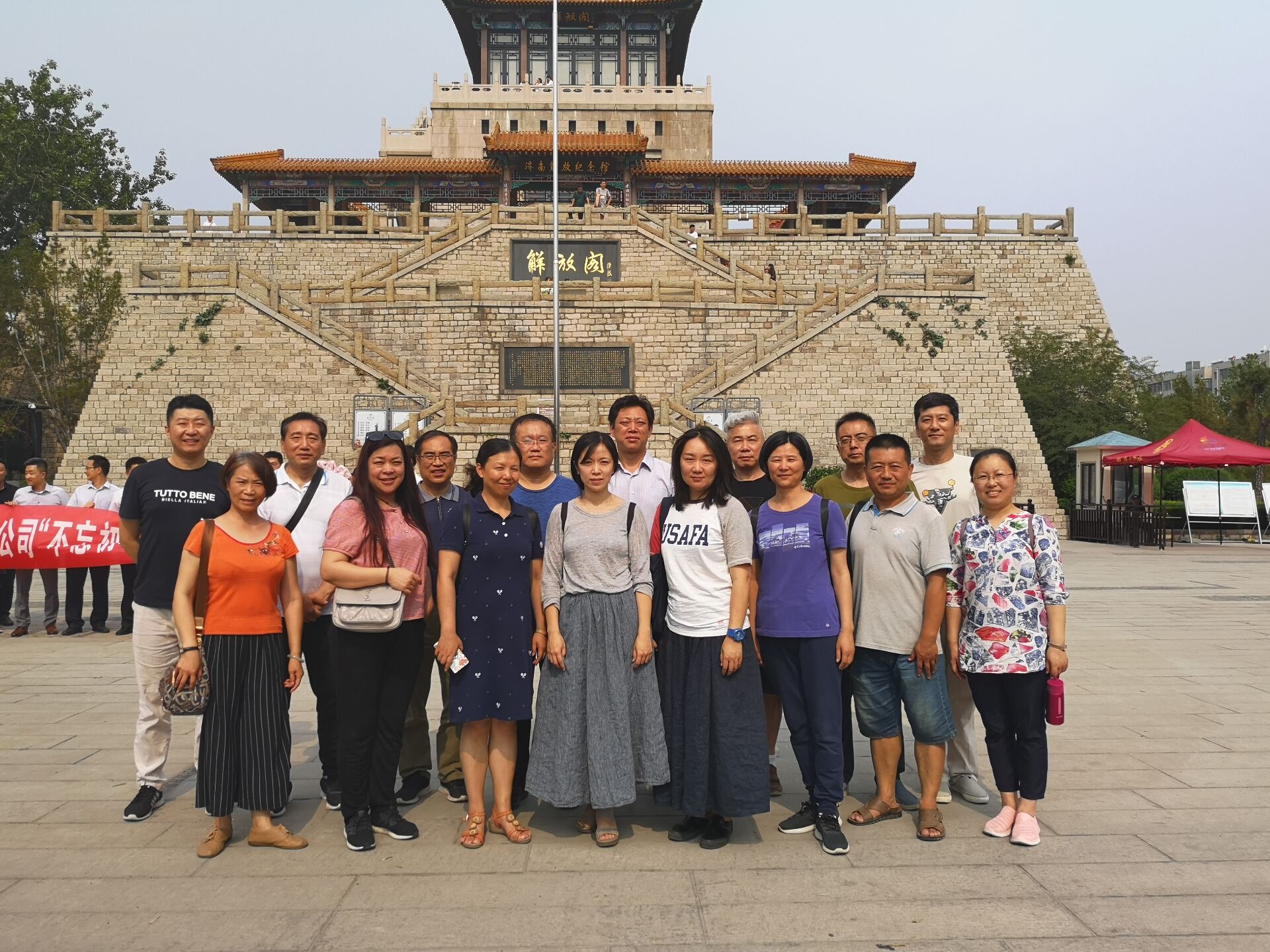 大家在支部书记刘国同志的带领下,登上解放阁,参观了济南解放纪念馆。纪念馆内,大量的文物和照片资料,生动地展现了济南战役的历史场景。解说员的讲解,让大家重温了那段烽火硝烟的历史岁月和共产党领导军民浴血奋战、夺取革命胜利的辉煌历程。站在解放阁上,俯瞰美丽的泉城景色,回想济南战役中那些可歌可泣的故事,英雄们的事迹感染了在场所有党员同志,使大家接受了一次精神上的洗礼,对新时代党的建设和现代化强国建设、实现两个一百年奋斗目标,实现中华民族复兴的伟大中国梦充满了信心。