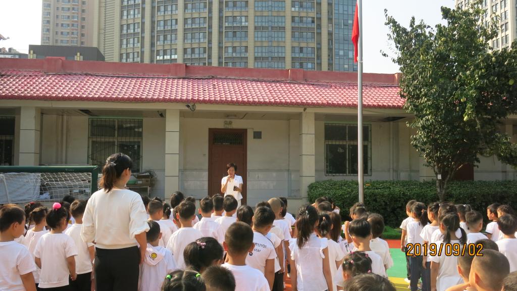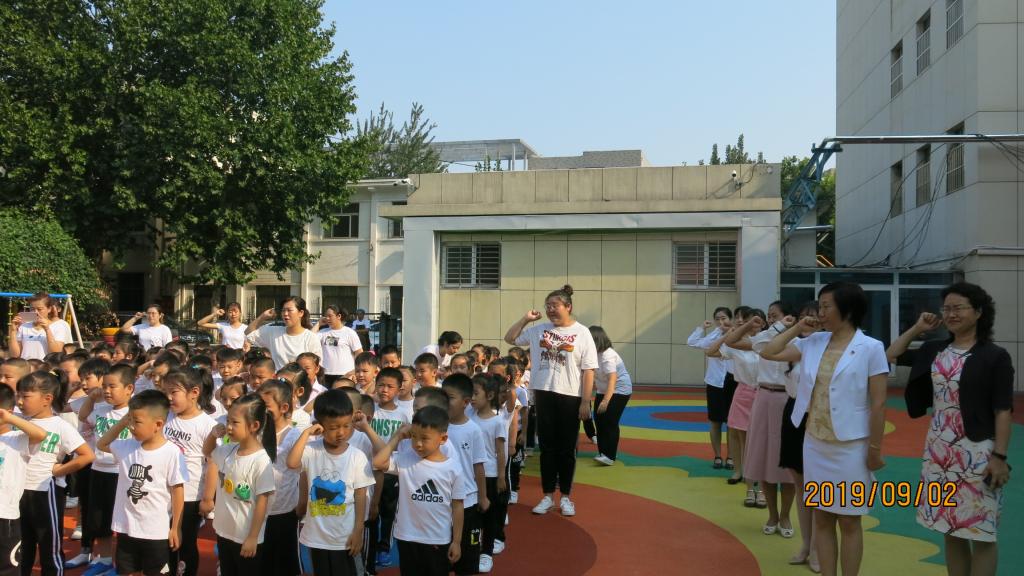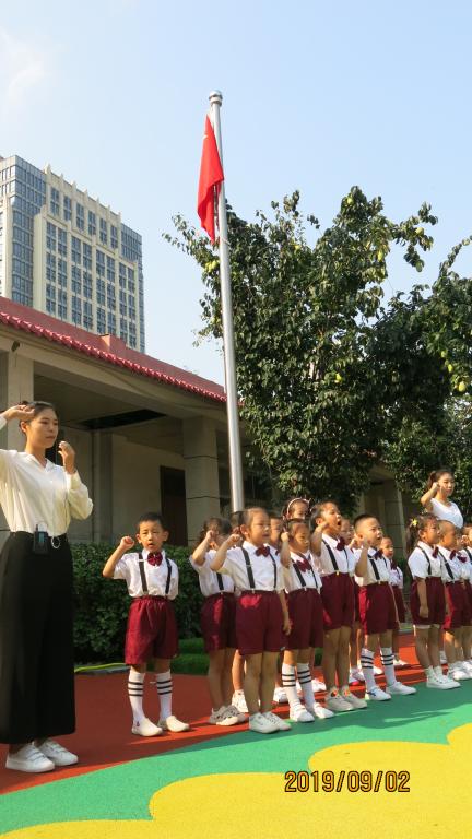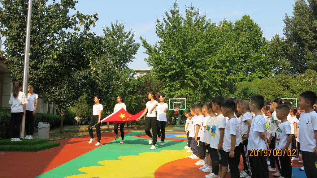 9月2日早上,我校附属幼儿园的全体教职工和全体幼儿整齐列队在操场上,在庄严肃穆的国歌声中、在老师、孩子们的共同注目下,鲜艳的五星红旗徐徐升起。孩子们嘹亮的歌声、紧握的拳头在国旗下都是那么的有力量。