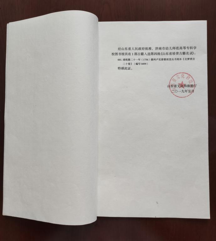 近期,经山东省人民政府批准,我校馆藏古籍:清乾隆二十一年(1756)德州卢见曾雅雨堂丛书刻本《北梦琐言二十卷》入选第四批《山东省珍贵古籍名录》。