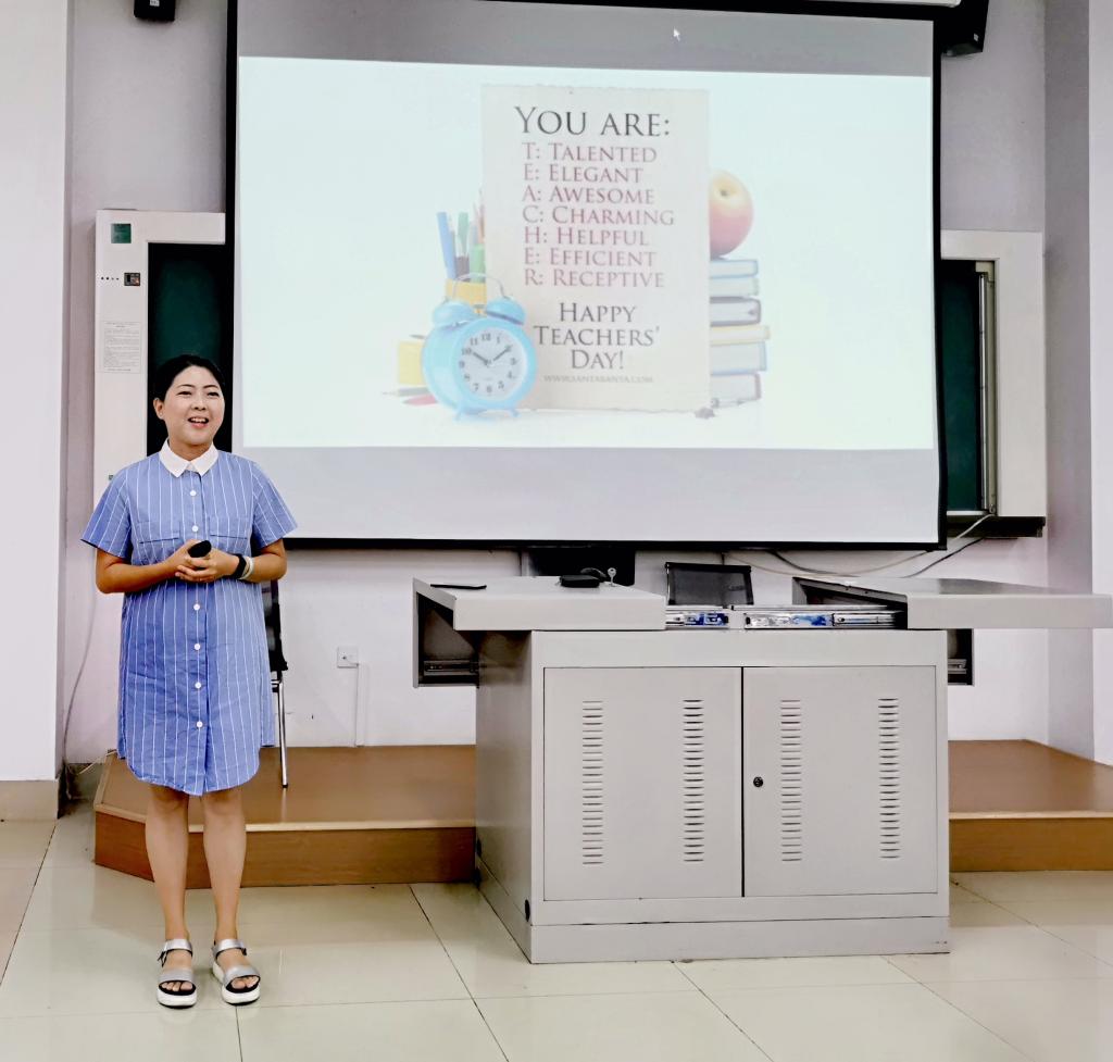 9月10日上午,济南市小学英语教研员管玲老师以“外研版小学英语教材解读及典型案例解析”为主题,为我校英语教育专业师生做了一场精彩的讲座。本次讲座是英语教育专业开展的师范生从业技能大赛辅导系列活动之一。