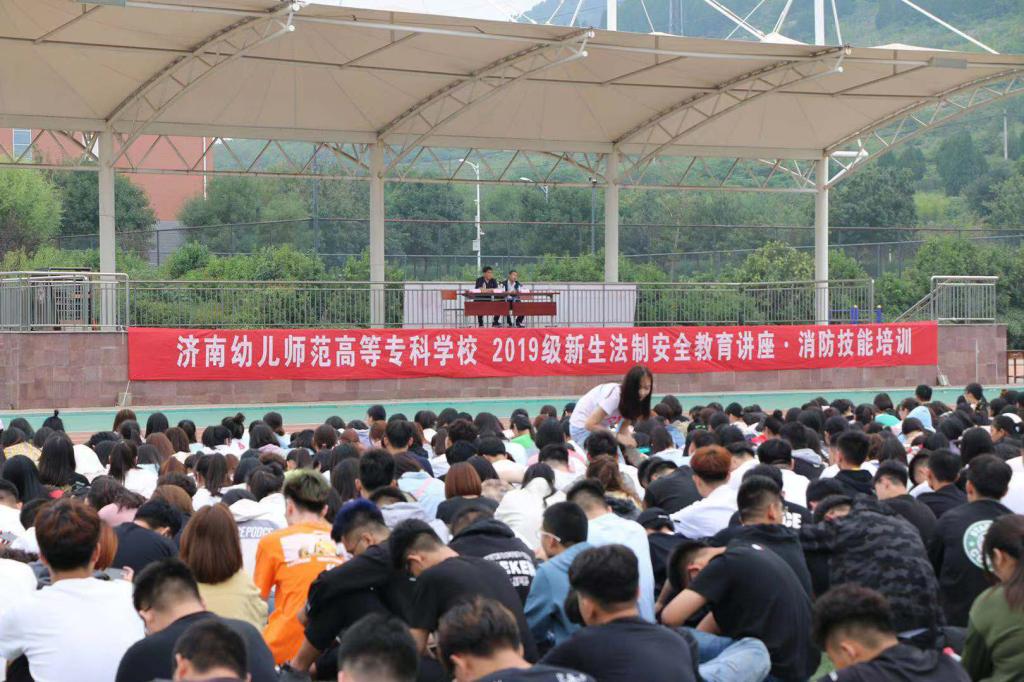 9月17日下午,长清刑警大队费警官和中国安全健康教育网消防安全讲师吕老师为我校2019级近2800名新同学进行了一场法制安全教育讲座和消防技能培训。