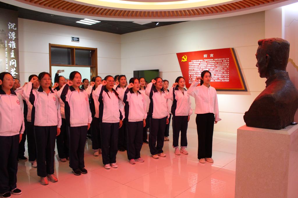 参观两馆后,学院组织新生在王尽美展馆举行了庄严的宣誓仪式。新生们昂首挺胸,坚定地喊出内心的梦想,立志要谨记校训,不负时代使命。陈书记向新生们指出,要深刻领会王尽美精神,不忘初心,树立与学校、与国家同呼吸共命运的爱校爱国的家国情怀,不断提升自我,当好新时代的逐梦人和逐梦人。