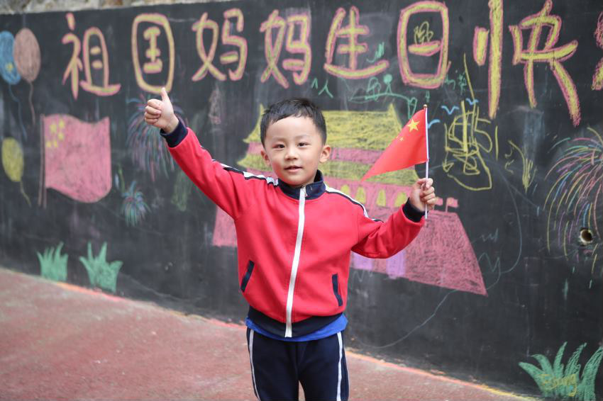 活动按各年龄段分阶段进行,各班教师依据孩子的年龄特点和发展水平,与孩子们精心组织,演绎了一场浓浓的爱国主义庆祝活动。小班孩子们在老师的引导下认识国旗、国徽和天安门,感受到身为一个中国人的自豪感;在中班的教室里,孩子们用稚嫩的小手自制五星红旗,共同祝愿祖国妈妈更加繁荣昌盛!大班的孩子们汇集在操场上,小手伏案,笔锋穿梭在画布上,聚精会神的用画笔勾勒出祖国的壮丽风景,装饰着美丽的祖国。孩子们把心中对祖国妈妈的无限遐想和浓浓的祝福,都化作了一幅幅美丽的画卷