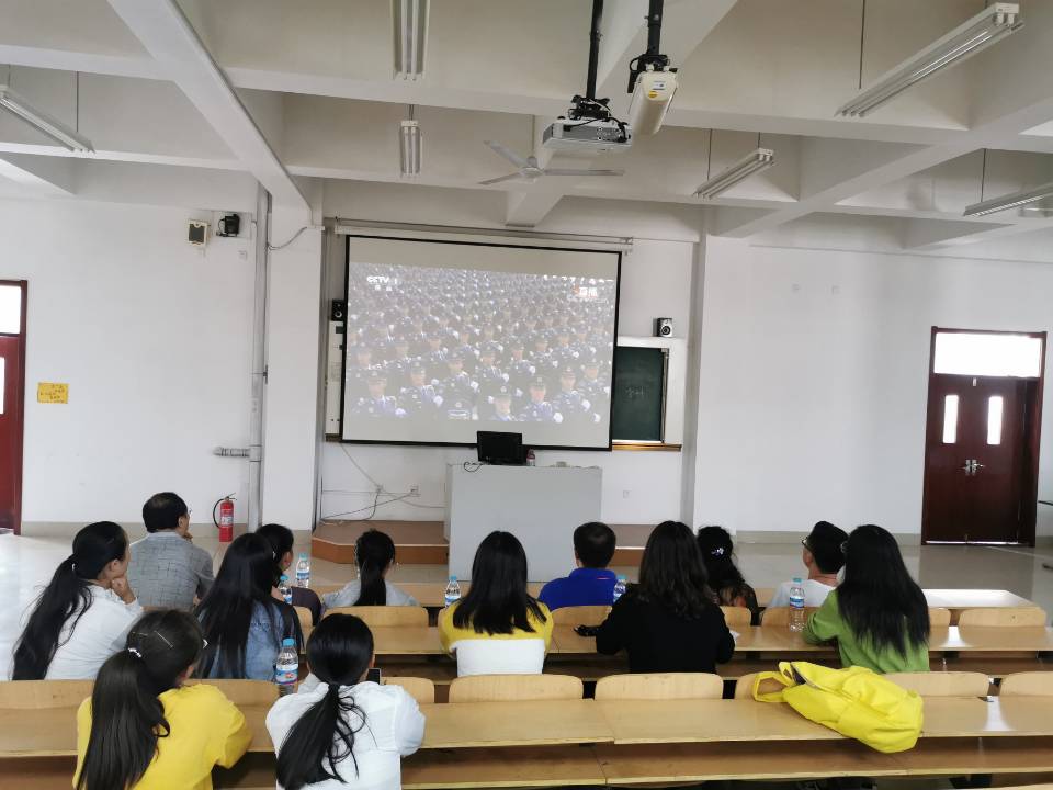 上午10时,盛大的庆典正式开始。阅兵式上中国人民解放军的英武雄姿,展现了人民军队保卫祖国、战无不胜的坚强决心;依次亮相的高精尖新型武器,展示出我国强大的军事力量。看到这样的威武之师,这样的尖端武器,师生们深深感受到祖国的雄厚实力,深深为祖国的繁荣昌盛而自豪。随后的群众游行,热烈、隆重而又欢愉、活泼,展现了广大人民群众在中国共产党的领导下,艰苦奋进迎来幸福生活的历程,如同一幅壮美的历史画卷铺展在天安门前,向世界昭示新时代中国人的精神风貌。整场庆典深深感动着每一个观看者,也更进一步激发了师生们强烈的爱国热情。