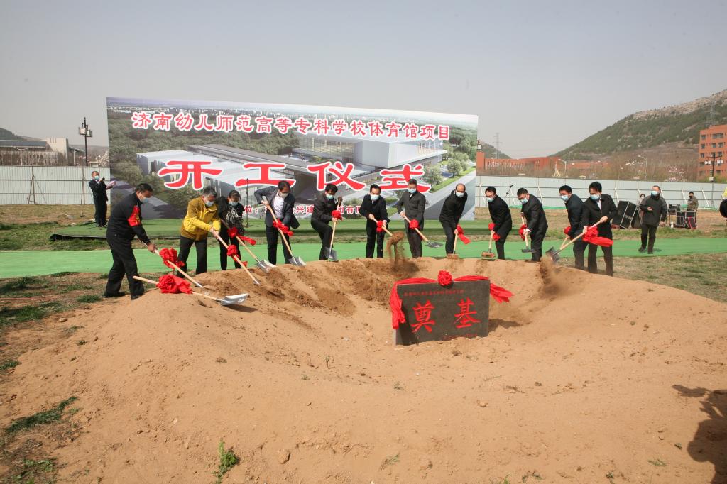 市委教育工委常务副书记、市教育局局长王品木、济南市政府参事黄祖杰、济南幼高专党委书记武善欣、山东长兴建设集团有限公司董事长刘继营等参加了奠基仪式。
