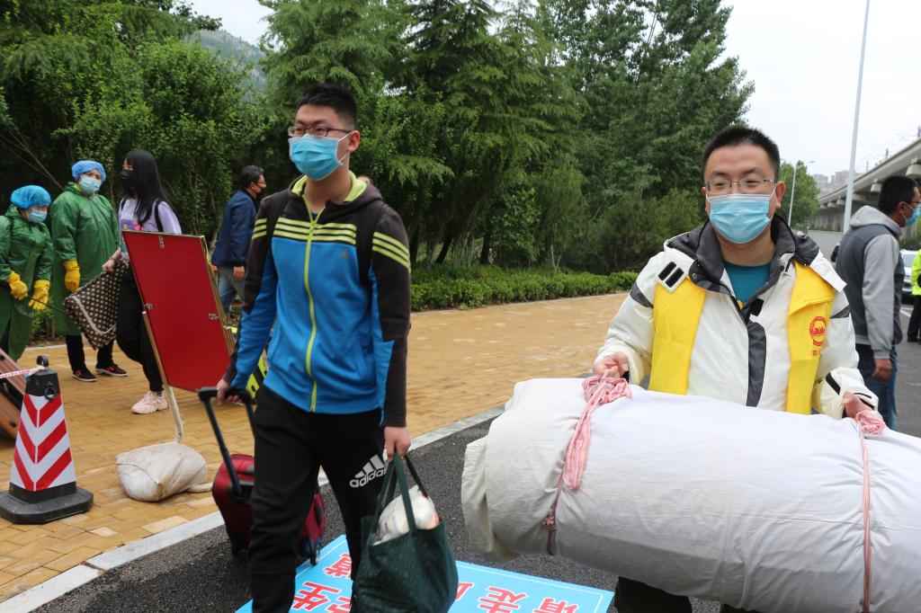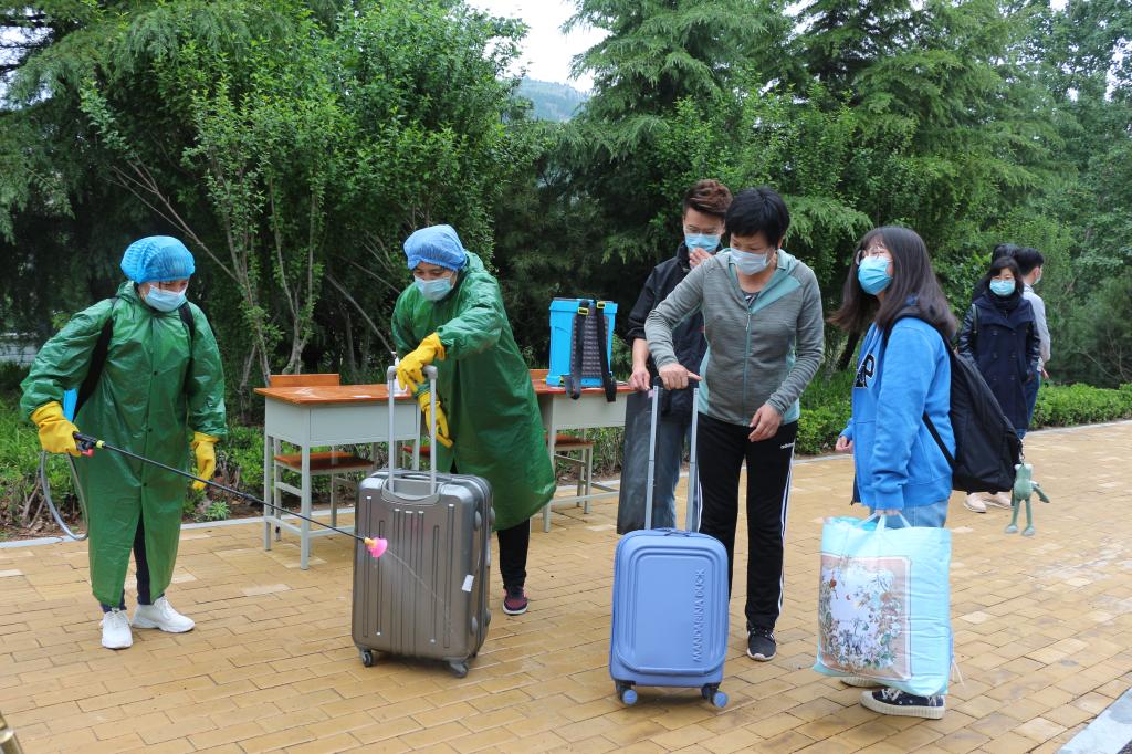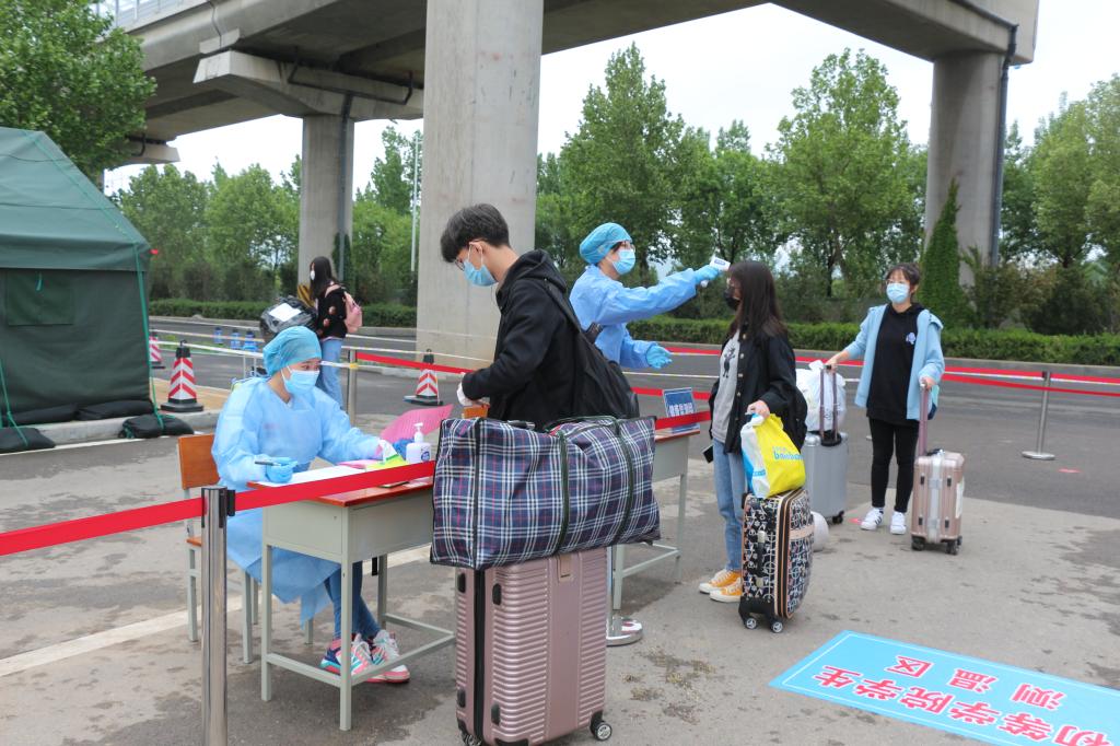“同学你好,欢迎返校!”成为老师们对学生说得最多的一句话。返校学生有序排队,体温无异常且物品消毒后方可进入校区,同时发放入校明白纸。学生在校内引导员的指引下,按照指定路线到达宿舍整理个人物品。