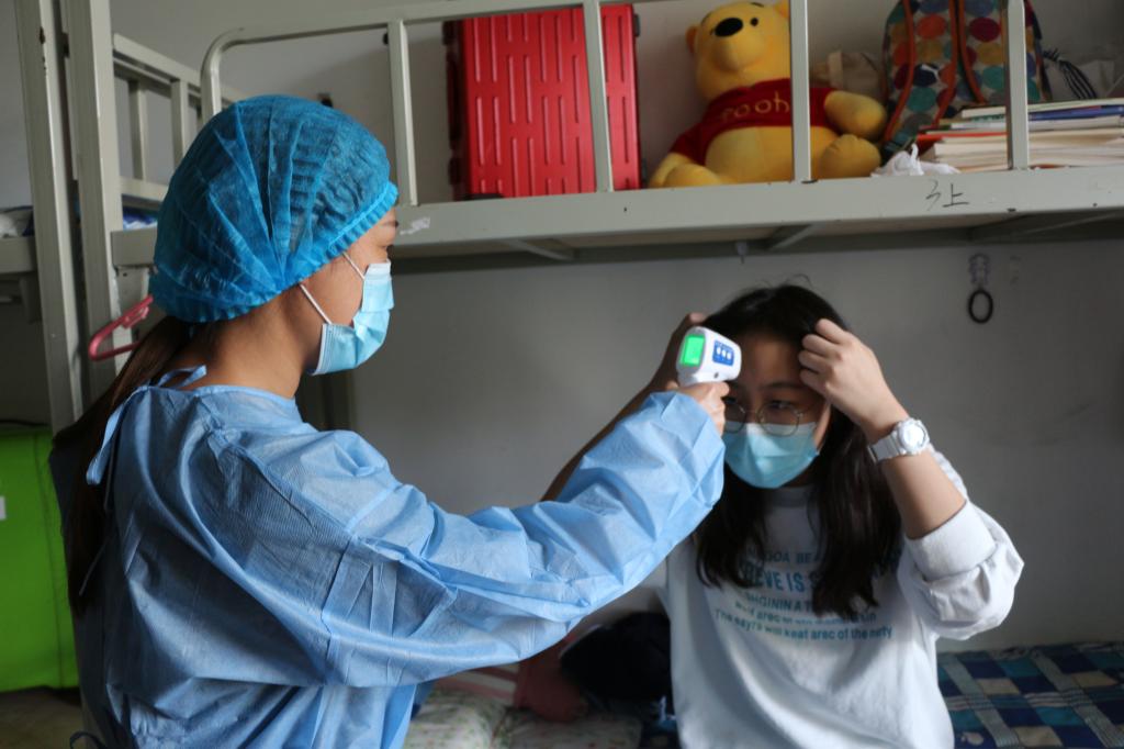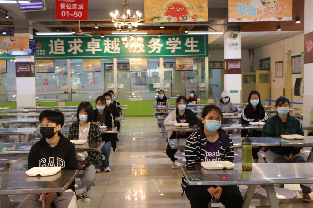 此次演练主要包括学生餐厅就餐体温异常应急处置和学生在宿舍内体温异常应急处置等内容。在餐厅演练过程中,同学们有序排队测温,洗手取餐,对号入座。在宿舍演练环节中,同学们依次通过红外线成像测温测控通道进入宿舍。在演练中,出现异常状况的同学会由各场所应急联络员带领至临时留观点,由医务人员对其进行问诊,班主任、心理辅导老师进行心理疏导。同时,根据校医诊断情况,上报学校领导,启动应急预案,并将学生送往医院,学校相关人员对临时留观点和相应场所进行消毒处理等。