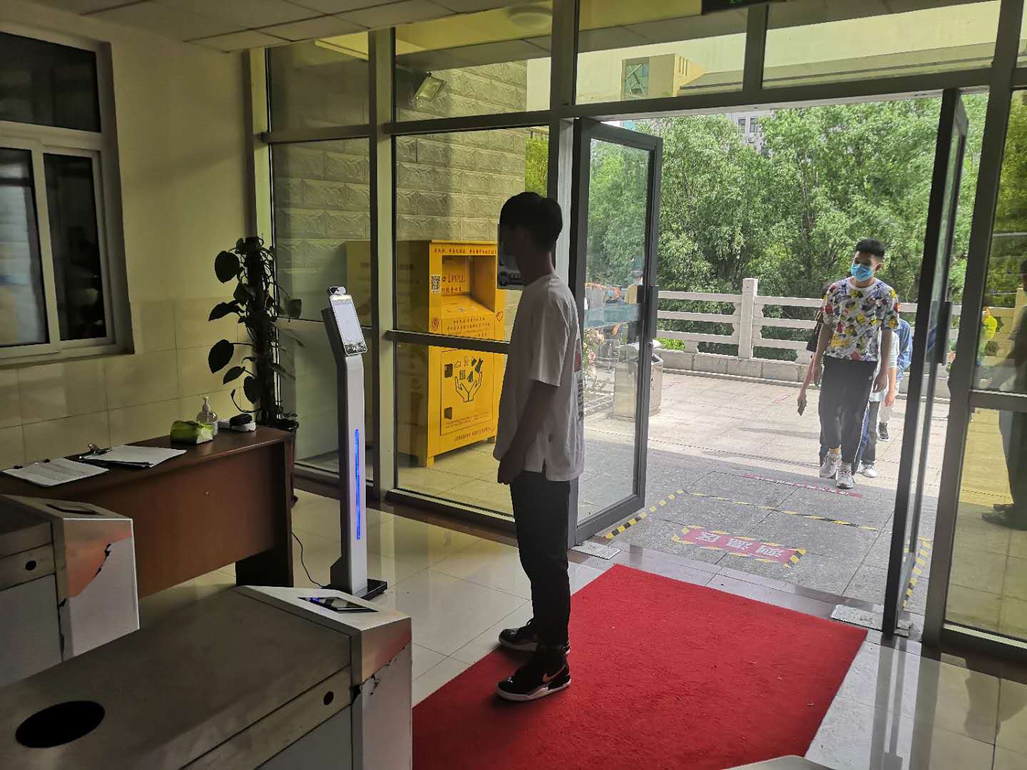 演练过程包括学生排队有序进入公寓、宿管老师测温、体温异常学生信息上报、校医现场处置、班主任和心理健康老师现场安抚学生情绪和心理疏导、学生宿舍消毒、现场防护注意事项说明等内容。