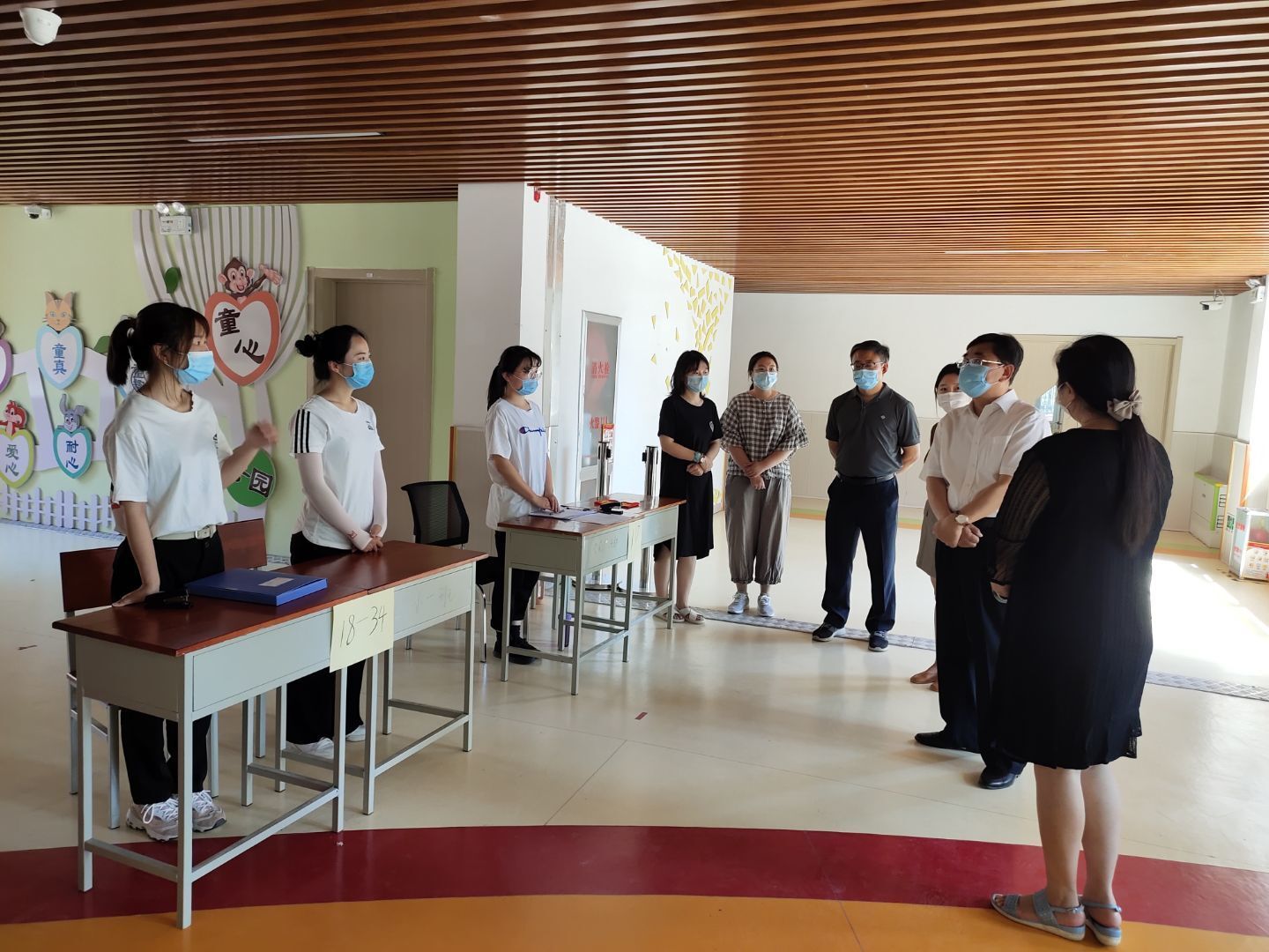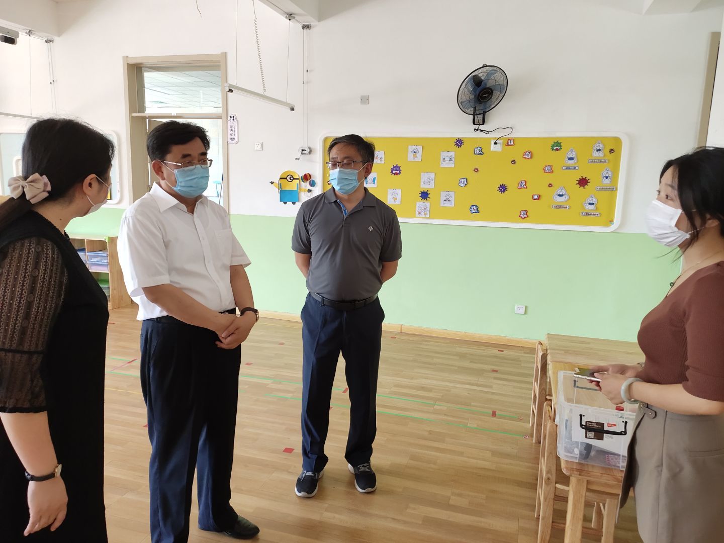 武书记及王主任亲切的询问了老师们的工作情况,实地考察了幼儿活动室、隔离室、物资储备室等重点环境,并观看了幼儿园防疫应急演练的视频录像,对幼儿园的防疫工作、开园准备工作给予了肯定和支持;驻区派出所民警随后对幼儿园进行了常规安全工作的检查,重点询问了幼儿园的安保工作情况。