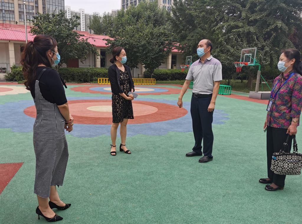 为进一步做好幼儿园疫情常态化防控工作,抓实抓细防控措施,保障学生身心健康,6月23日,济南市教育局副局长、党组成员刘绍辉、国际处王海宇处长一行两人采取“四不两直”方式到我校附属幼儿园进行济南市学校春季学期疫情常态化防控督导检查。