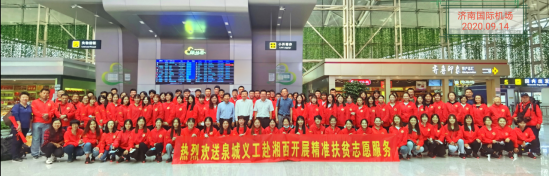 9月14日上午,我校50名赴湘西州支教的师生在济南遥墙国际机场出征,正式开始2020年的湘西州精准扶贫支教工作。我校党委委员、副校长崔建赴机场为师生送行。