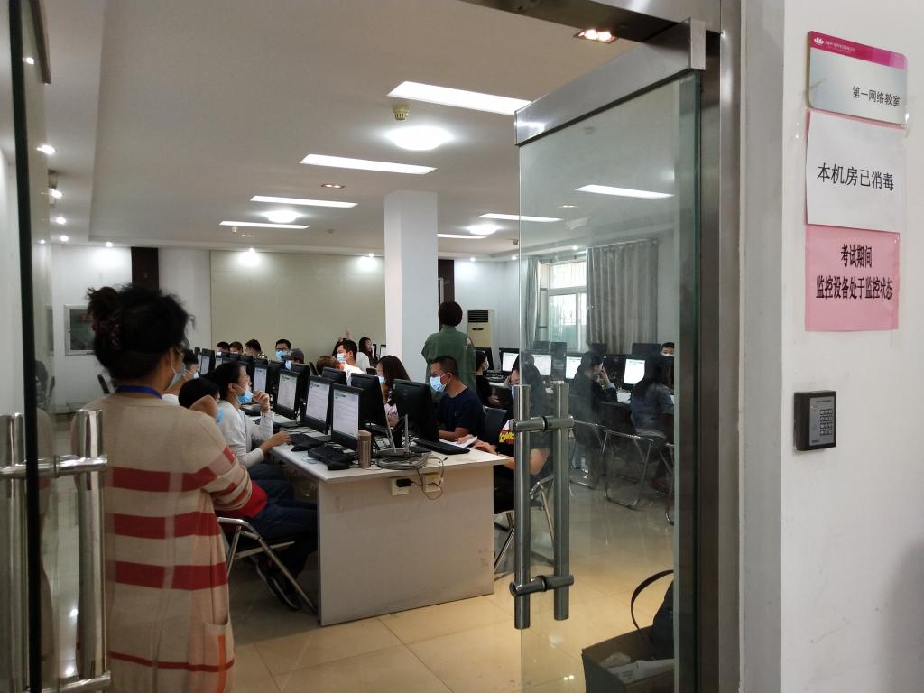 考试期间,考务人员加大疫情防控检查,每场考试严格对每位考生测温,监督所有考生考试全过程佩戴口罩,及时对考场进行消毒,确保考试全程无差错,疫情防控落实到位,圆满完成了考试任务。