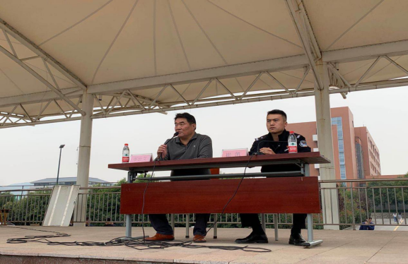 10月11日下午,我校2020级新生安全教育在田径场举行,大学路派出所崔凯副所长做了以预防网络诈骗为主要内容的安全教育,刘强讲师做了普及消防常识为主要内容的消防安全教育。随后,全体新生进行了一次应急疏散演练。最后,安全保卫处李世艾副处长做了总结讲话。