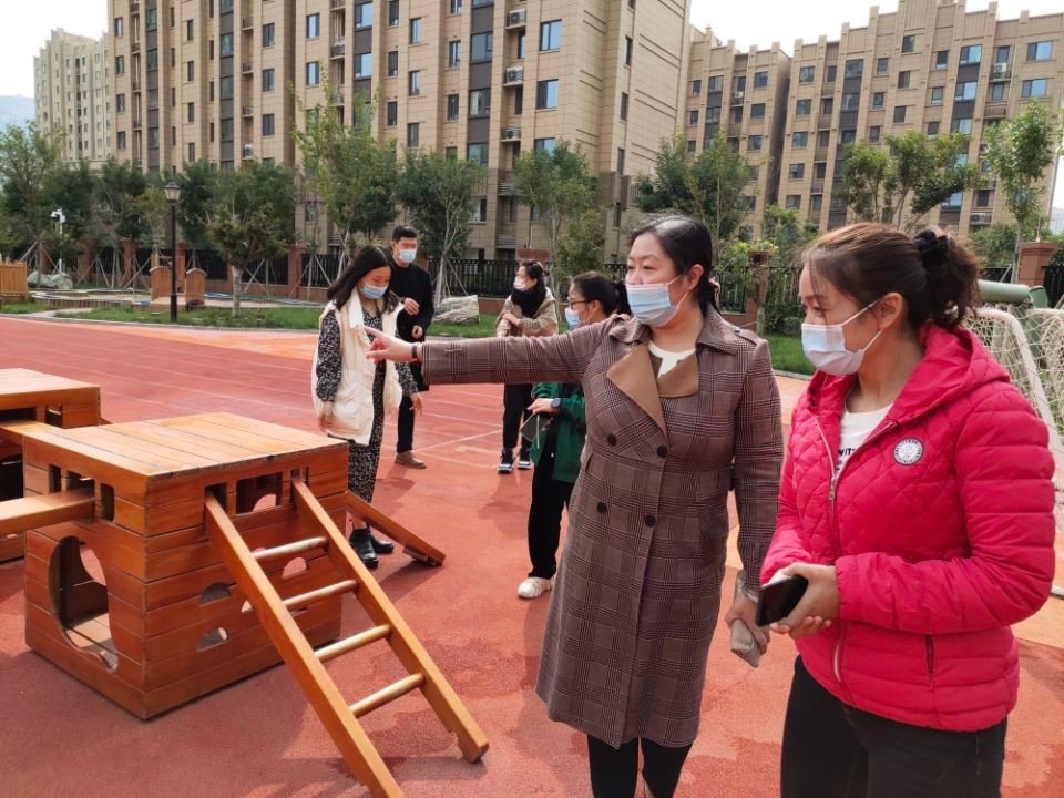 宽敞的户外活动场地、适宜幼儿游戏的中大型儿童玩具、开心农场蔬菜种植区等,给来访老师留下深刻印象;大家走进每个教学班,参观了班级文化、区域建设,了解班级的配套设施;一行人实地参观了幼儿园食堂、保健室、隔离室等功能间,对园所规范的配置表示充分肯定。