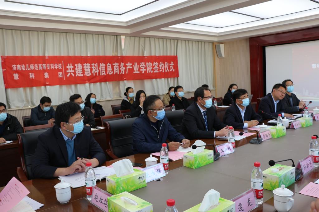 党委书记武善欣在致辞中指出,成立慧科信息商务产业学院是我校贯彻落实《国务院办公厅关于深化产教融合的若干意见》《教育部、山东省人民政府关于整省推进提质培优建设职业教育创新发展高地的意见》《关于推进新时代山东高等教育高质量发展的若干意见》等文件精神结出的硕果。他希望,通过双方的共同努力,把慧科信息商务产业学院共同打造成山东省产教融合的成功典范,为区域经济社会发展做出应有的贡献。